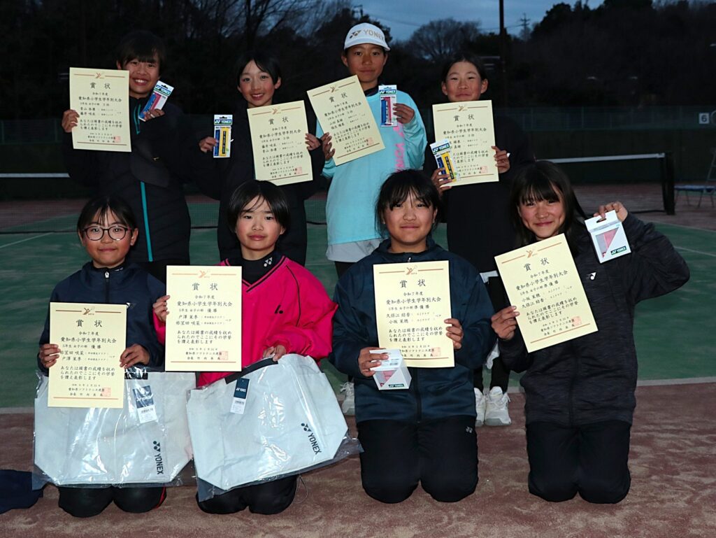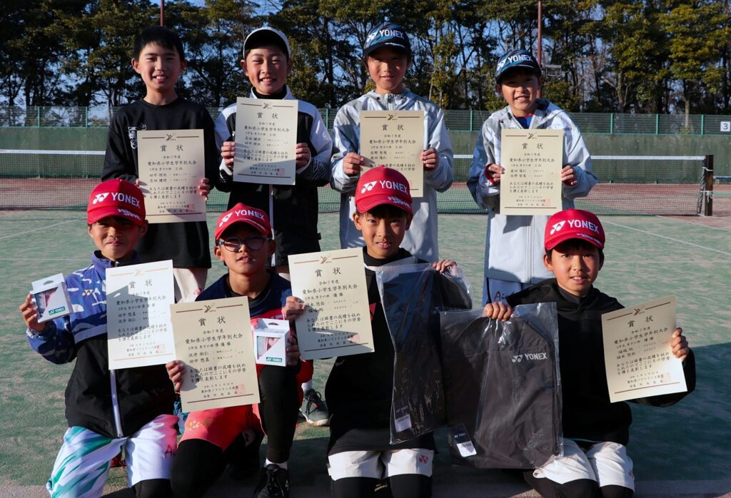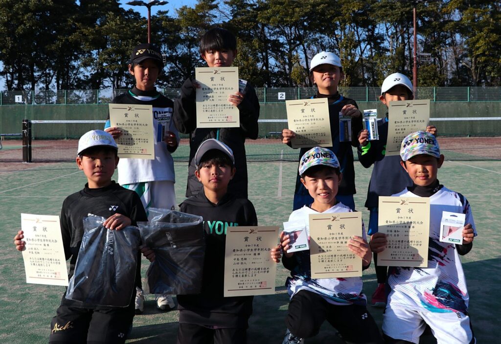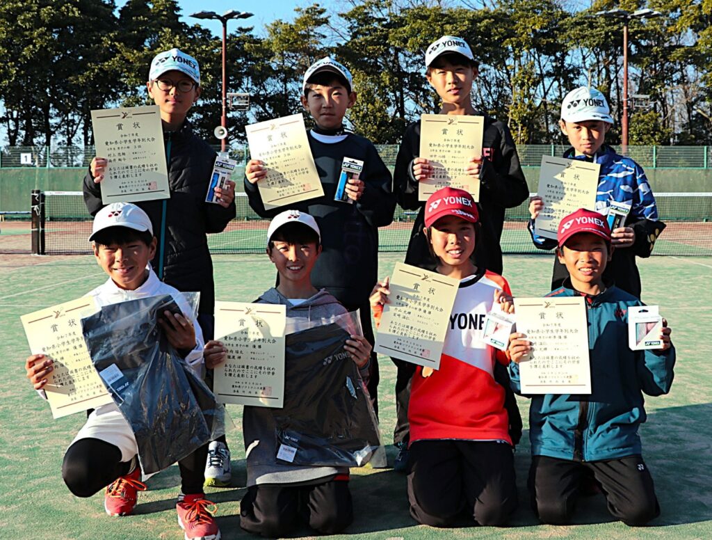 2月22日(日)、令和7年度 愛知県小学生学年別ソフトテニス大会が半田ぴよログスポーツパークテニスコートで開催されました。成績は以下のとおりです。