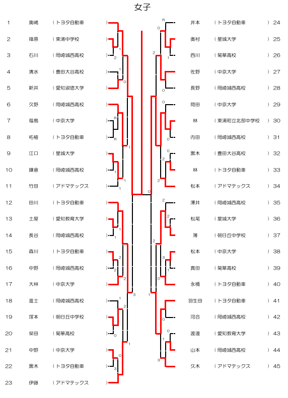 決 勝 奥嶋(トヨタ自動車) ④-0 林(東浦町立北部中学校)